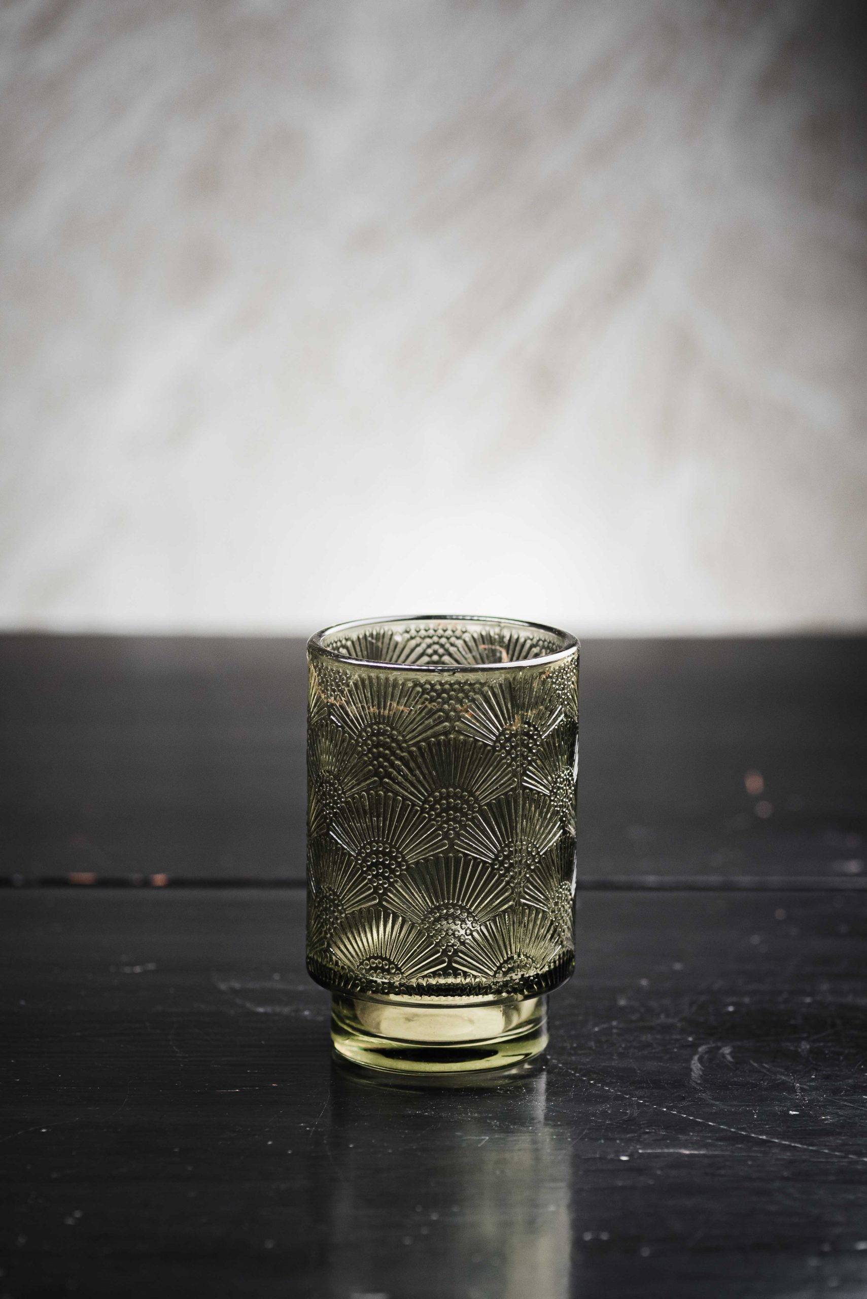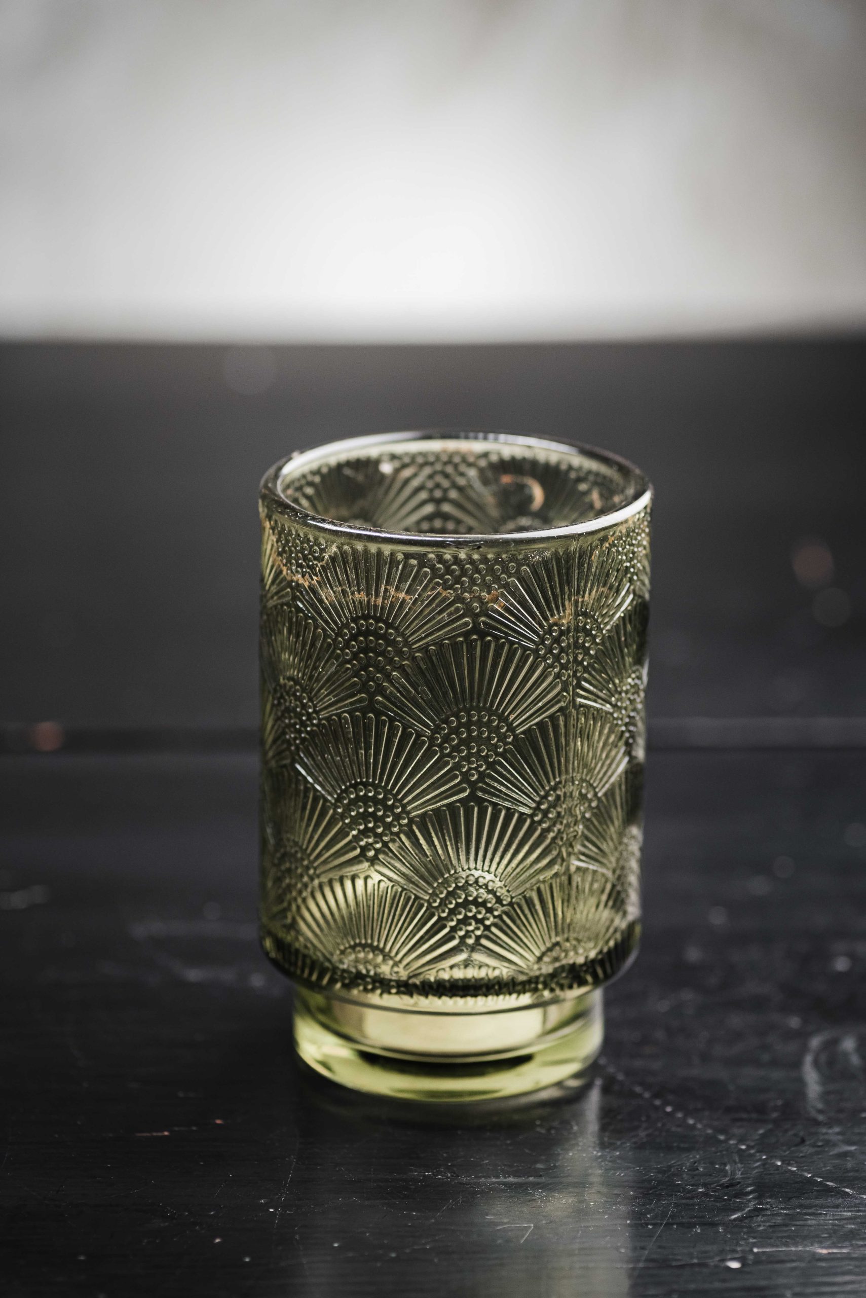 Γυάλινο Κηροπήγιο Ανάγλυφο Πράσινο