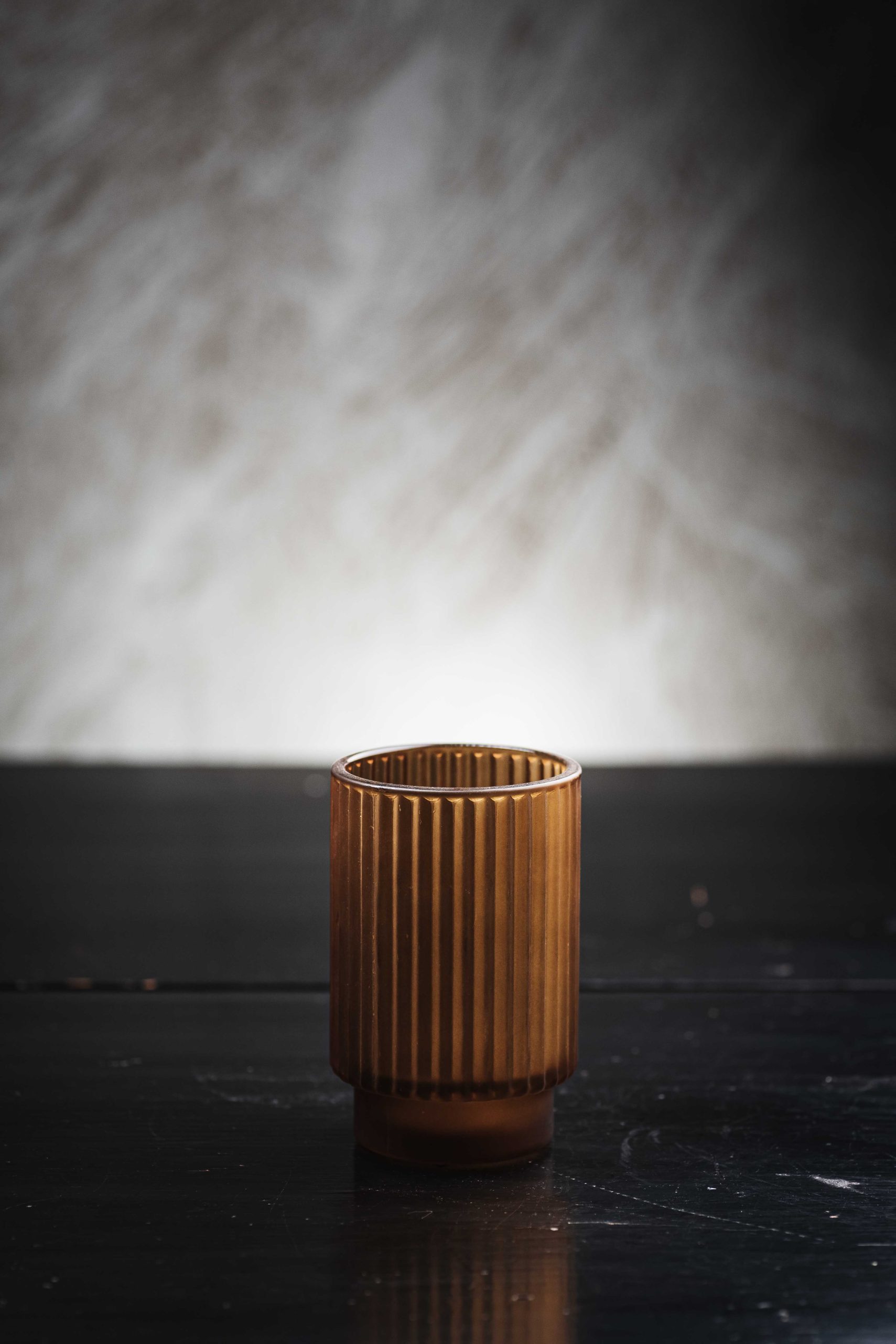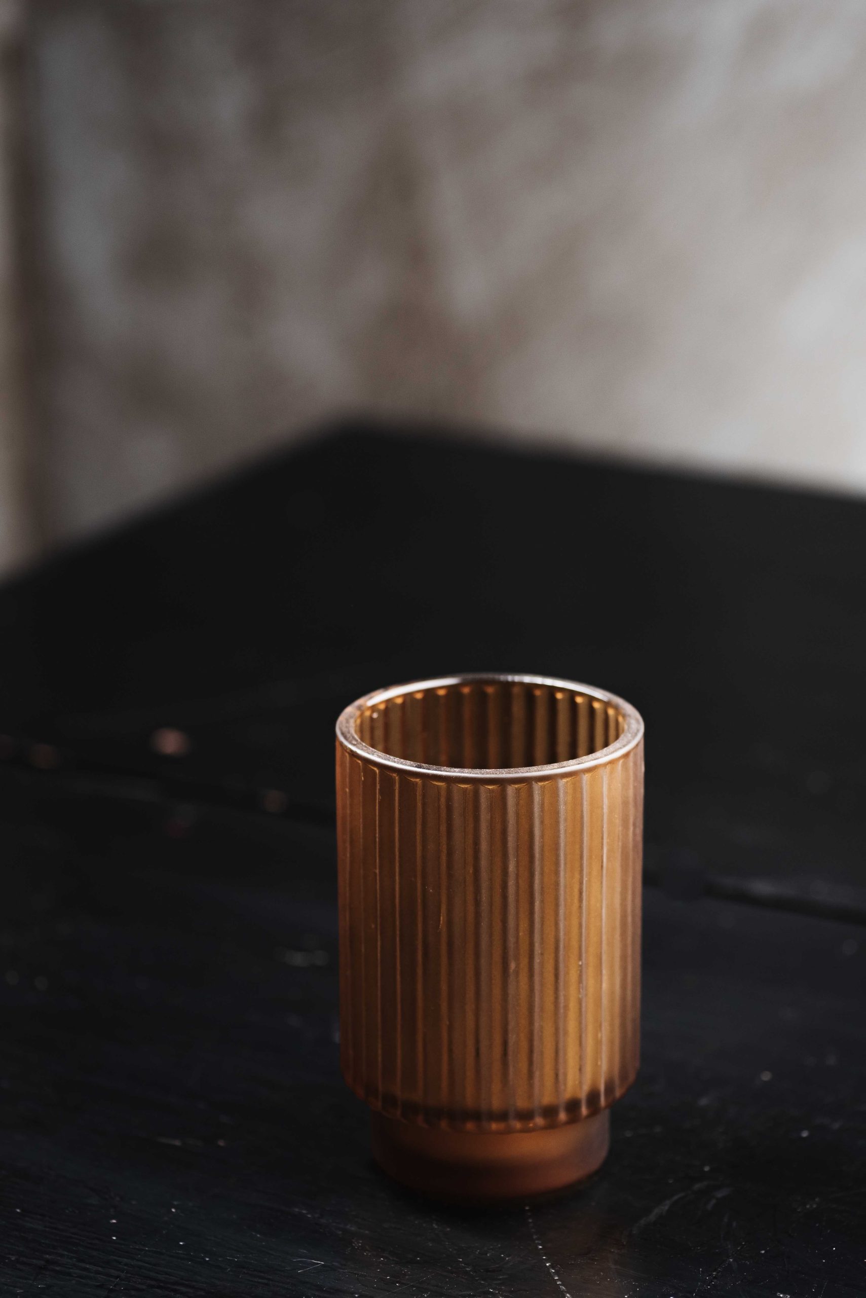 Γυάλινο Κηροπήγιο Amber με Ραβδωτή Υφή
