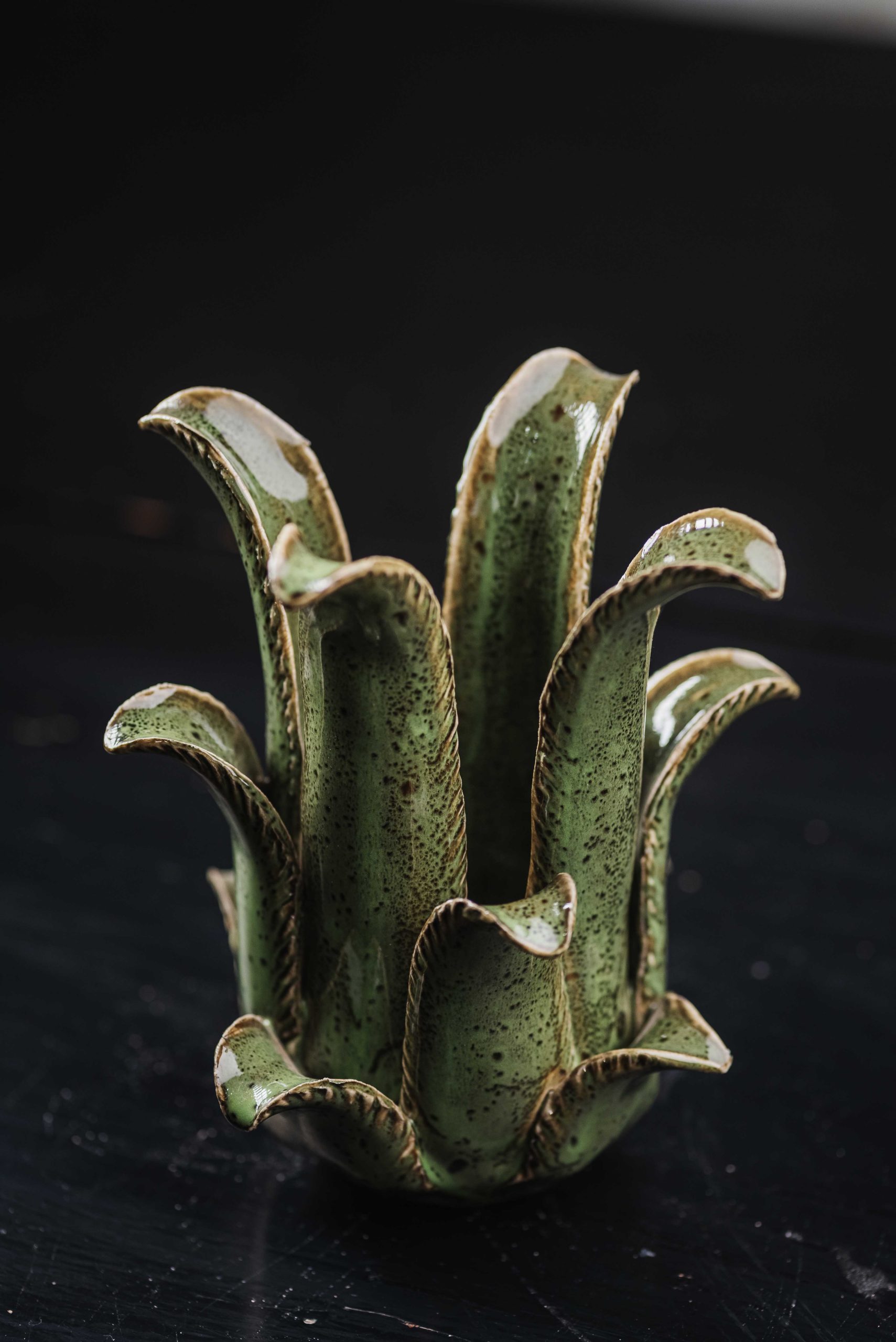 Κεραμικό Tealight Organic Design Moss Green Μεσαίου Μεγέθους