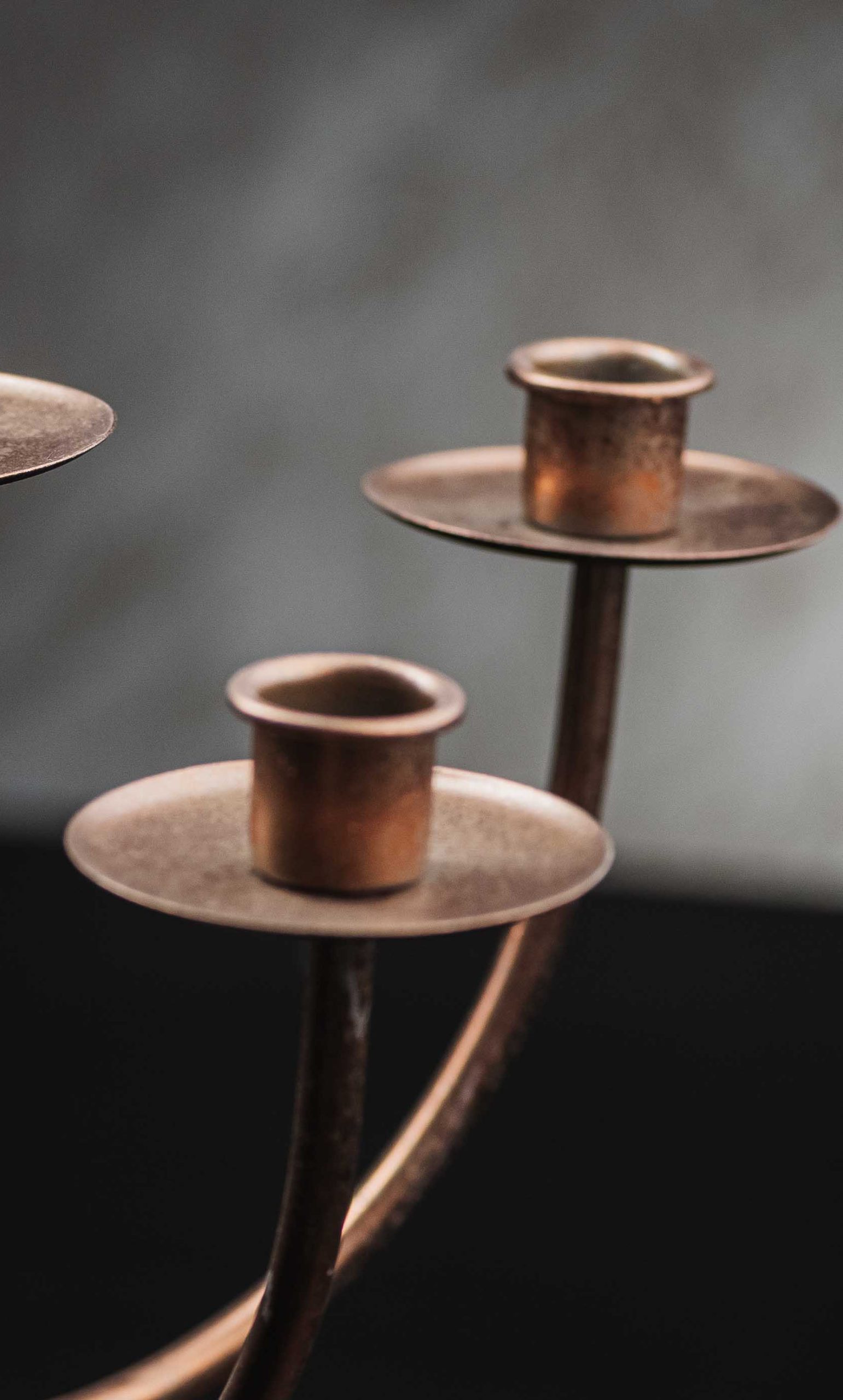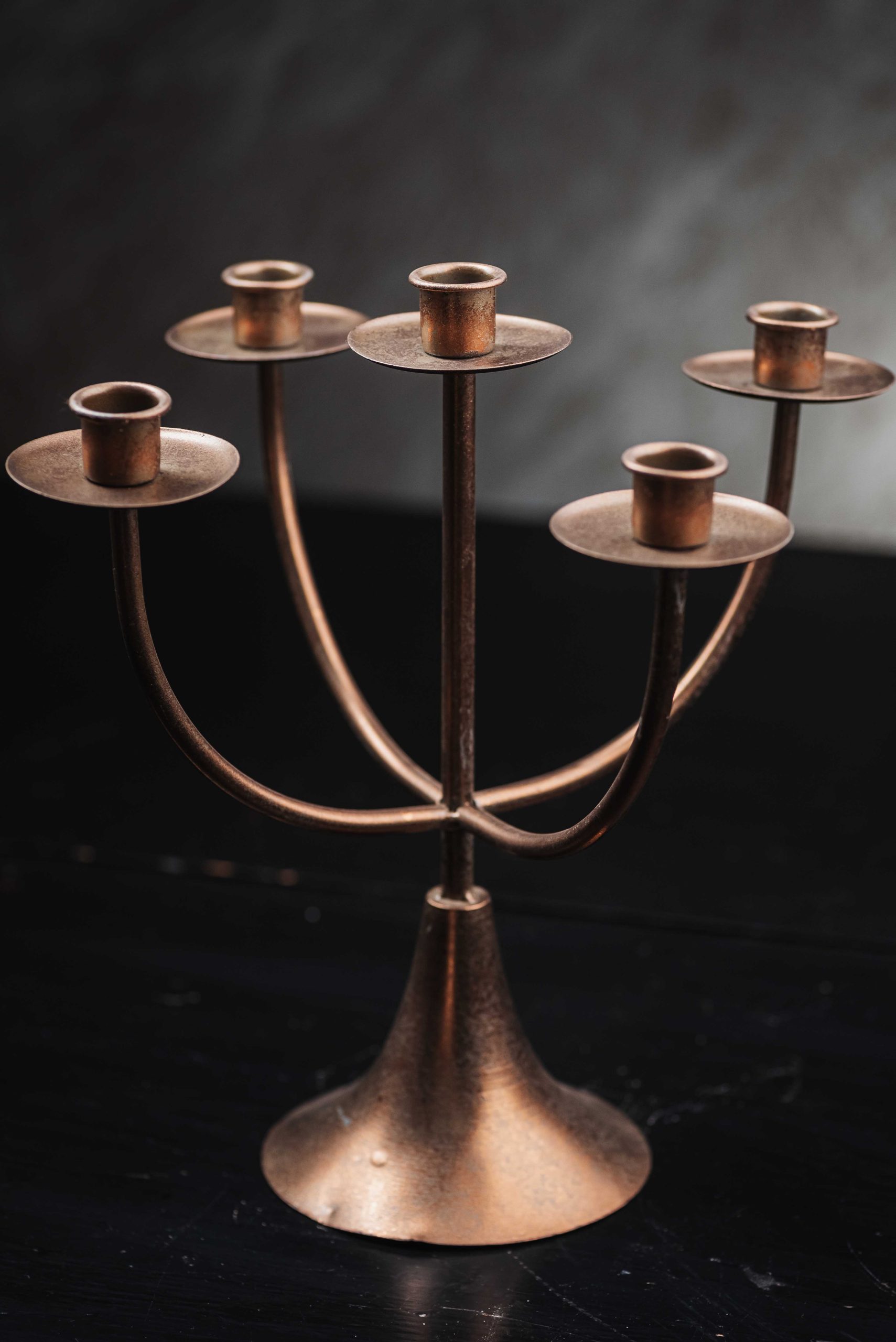 Κηροστάτης Μεταλλικός Πέντε Θέσεων σε Αντικέ Μπρονζέ Φινίρισμα